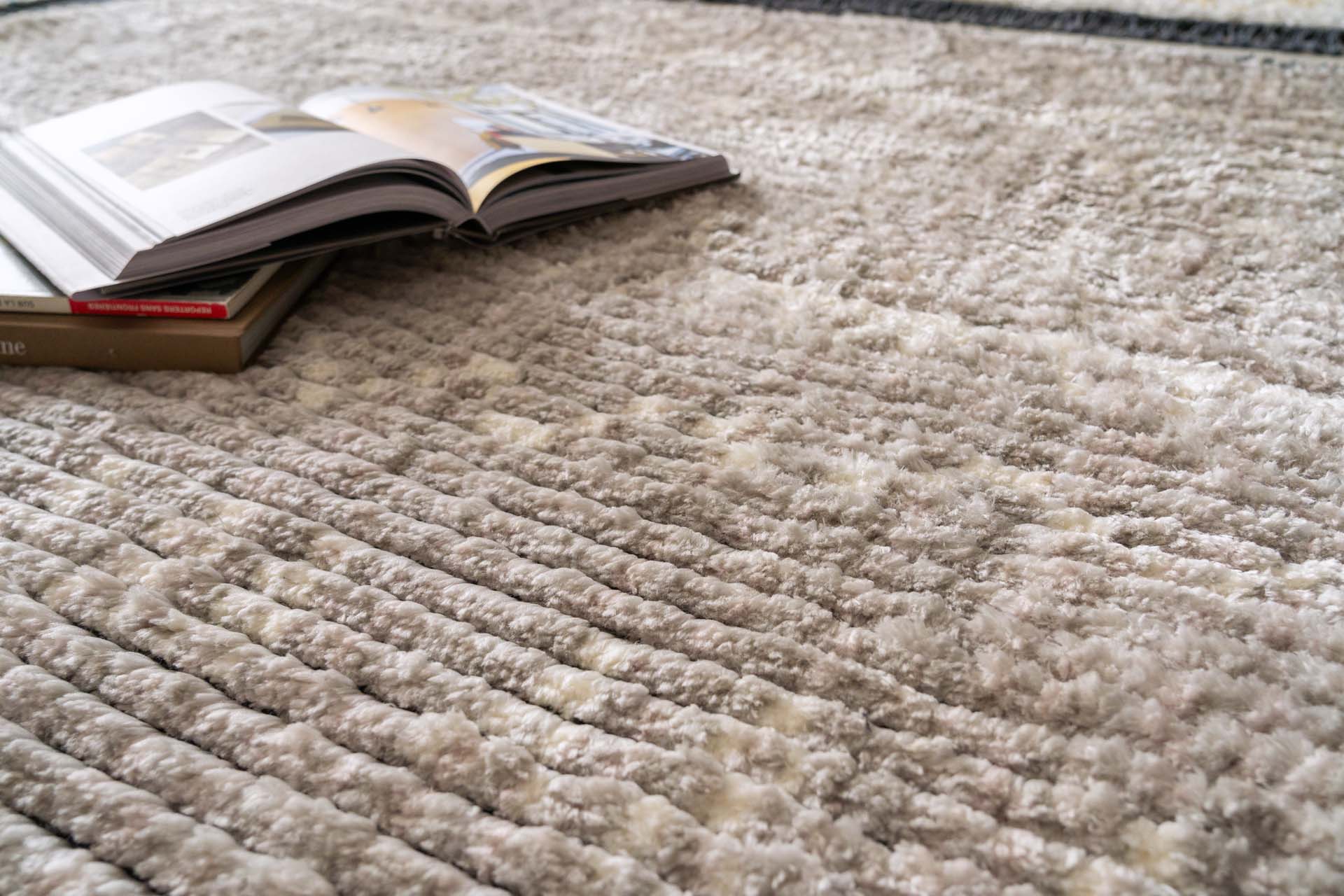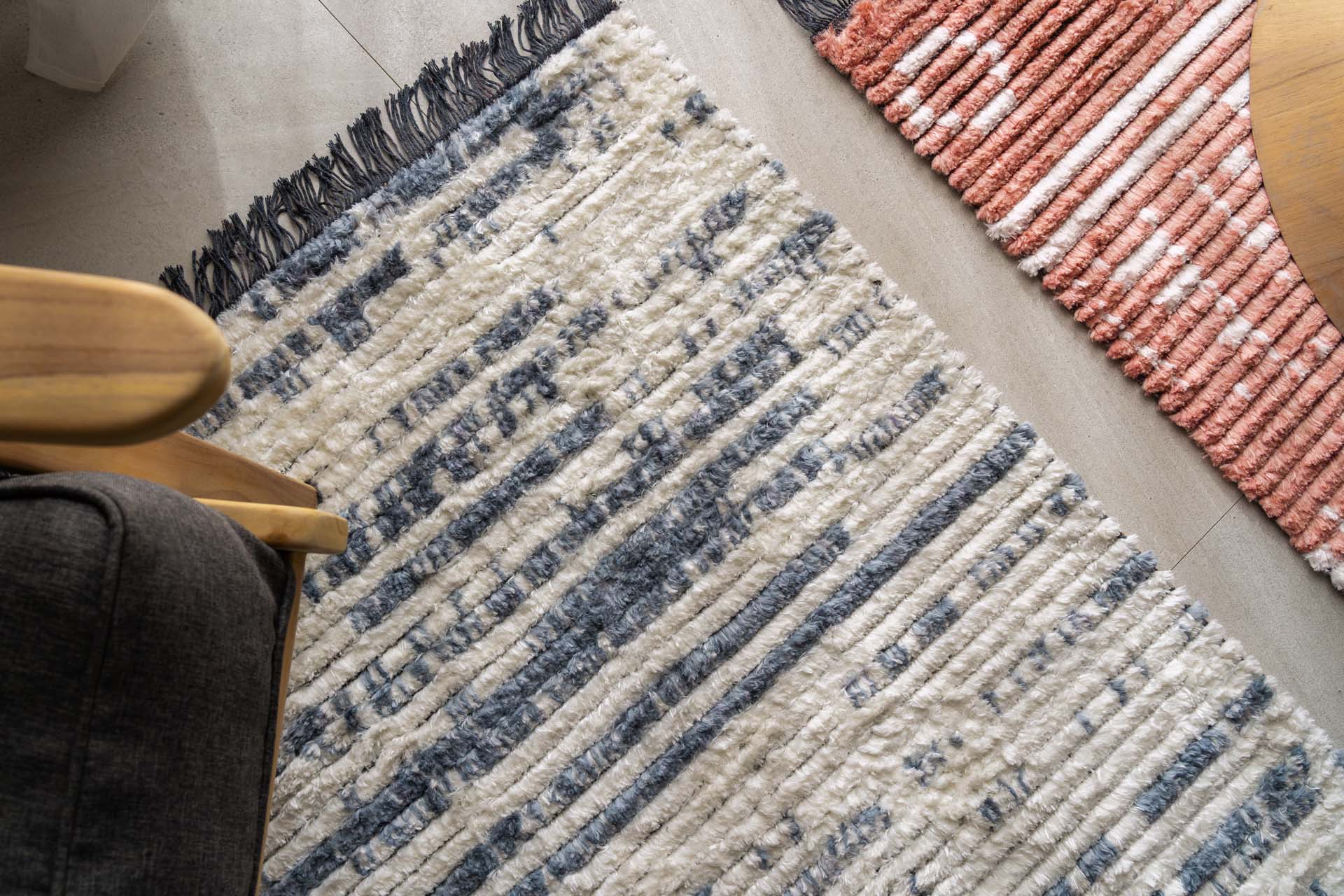 Μοντέρνο χαλί Iris με μοντέρνα διάθεση και shaggy υφή. Τα γεωμετρικά, μαροκινά σχέδια, καθώς το μακρύ μαύρο κρόσσι ξεχωρίζουν και αναβαθμίζουν το κάθε δωμάτιο. Προτείνονται για όλους τους χώρους του σπιτιού σας.